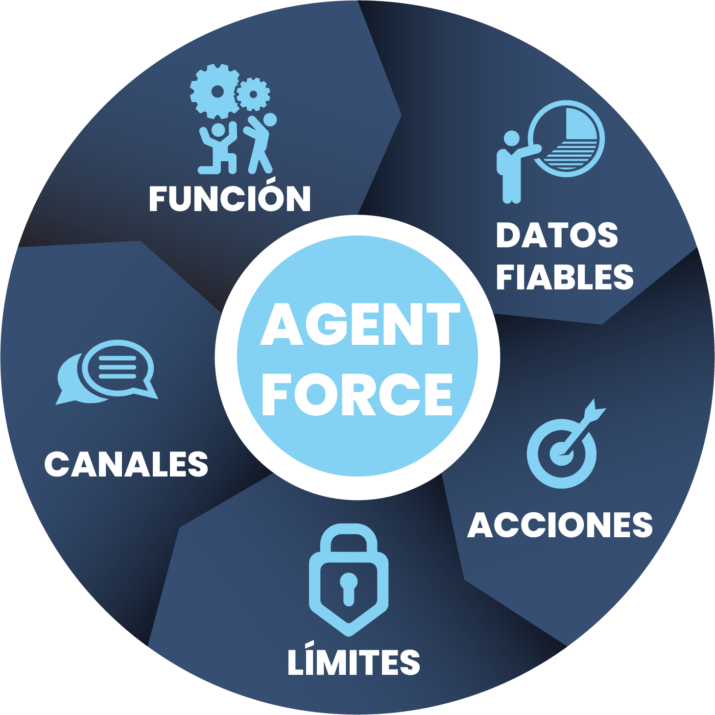 Más que un asistente conversacional, Agent Force automatiza procesos clave, interactúa en tiempo real con tus sistemas y toma acciones concretas dentro de tus flujos operativos. Optimiza la atención al cliente, agiliza tareas repetitivas y libera a tus equipos para lo que realmente importa.